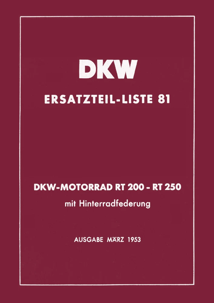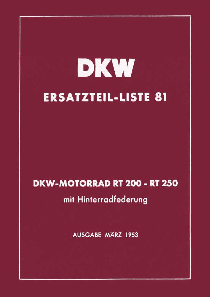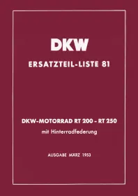Spare parts list for the DKW RT 200 and RT 250 motorcycles with rear suspension.