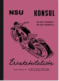 Spare parts list for NSU Konsul 351OS-T Konsul I and 501 OS-T Konsul II. Edition September 1951.