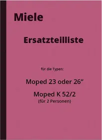 Spare parts list for Miele K 52/2 (issue Feburar 1962) and Moped type 23/26 for the chassis (issue February 1956).