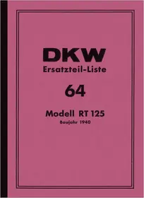 Spare parts list for DKW RT 125 (pre-war model) motorcycle. Edition 1940, in german. DKW No. 64.