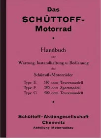 Operating instructions for Schüttoff E 350 Touring model, F 350 Sport model and G 500 Touring model. Manual for service, maintenance and operation including lubrication schedules. Edition 1926.