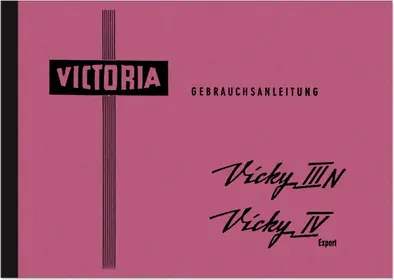 Operating instructions for Victoria Vicky III N and Vicky IV (Export) with engine type M 51 with 2 and 3 gears. Fits analogously also for the Vicky Luxus. Edition in german.