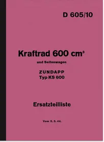 Spare parts list for Zündapp KS 600 WH with sidecar. Edition 2.5.1944. WH-No. D 605/10
