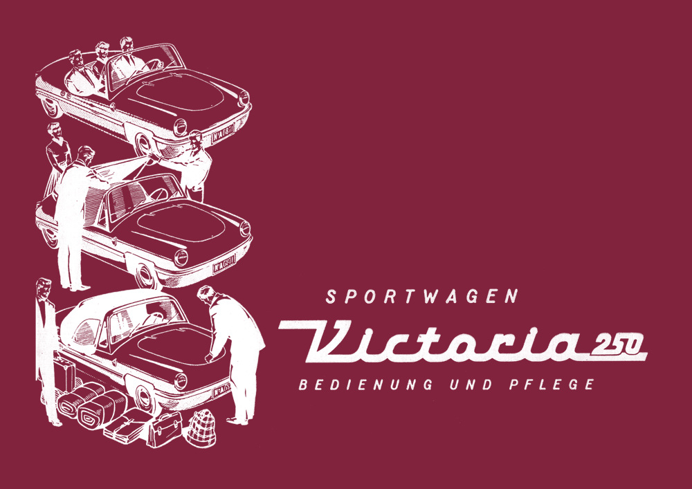 User Owner's Manual for the Victoria 250 sports car, 1-cylinder, 2-stroke engine with 14 hp. Technology, care, maintenance, and handling. Includes electrical circuit diagram.
