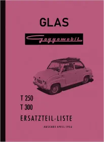 Spare parts catalog for Glas Goggomobil T 250/300, with rear-hinged doors. Issue 4/1956.