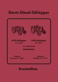 Spare parts list for Deutz diesel tractors 18/24 hp, type F2L 612/6 and F2L 612/5 with air-cooled diesel engine.
