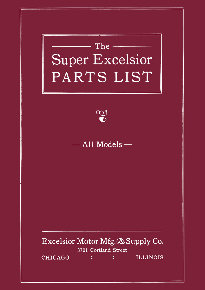 Spare parts catalog for Excelsior Super motorcycles from approximately 1925 to 1930.