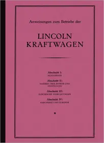 Instruction manual for Lincoln V 8 cylinder 5.9 ltr. Including wiring diagram. Edition 11/1924, in german.