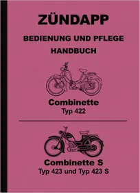 Operating instructions for Zündapp Combinette 422 (engine 255), Combinette 423 and 423 S (engine 258) with 2-speed manual transmission, 1.5 HP and pedal start