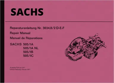 Repair instructions No. 3034.8/2 D-E-F. for Sachs 505/1A - 505/1A NL - 505/1B - 505/1C.