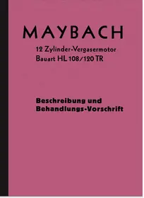 Description and treatment instructions for the 12-cylinder carburetor engine, type HL 108/120 TR, with 300/320 hp, 10.8 and 11.9 liters displacement. Edition December 1936.