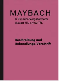Description and treatment instructions for Maybach 6 cylinder carburetor engine, type HL 57/62 TR. Edition October 1936.
