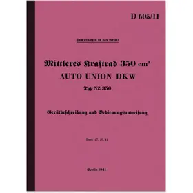 DKW NZ 350 WH NZ350 NZ-350 Operating Manual Manual D605/11 Wehrmacht