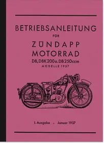 Operating instructions for Zündapp DB 200, DBK 200 and DB 250, 1st edition January 1937.