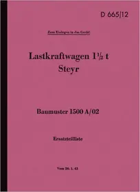 Spare parts list for Steyr truck 1,5t type 1500 A/02. army regulation 665/12. issue 26.01.1943, in german.