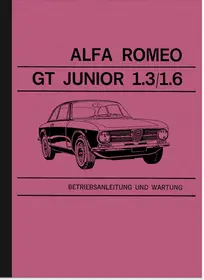 Owner's manual for Alfa Romeo GT Junior 1300/1600. February 1974 edition, in German.