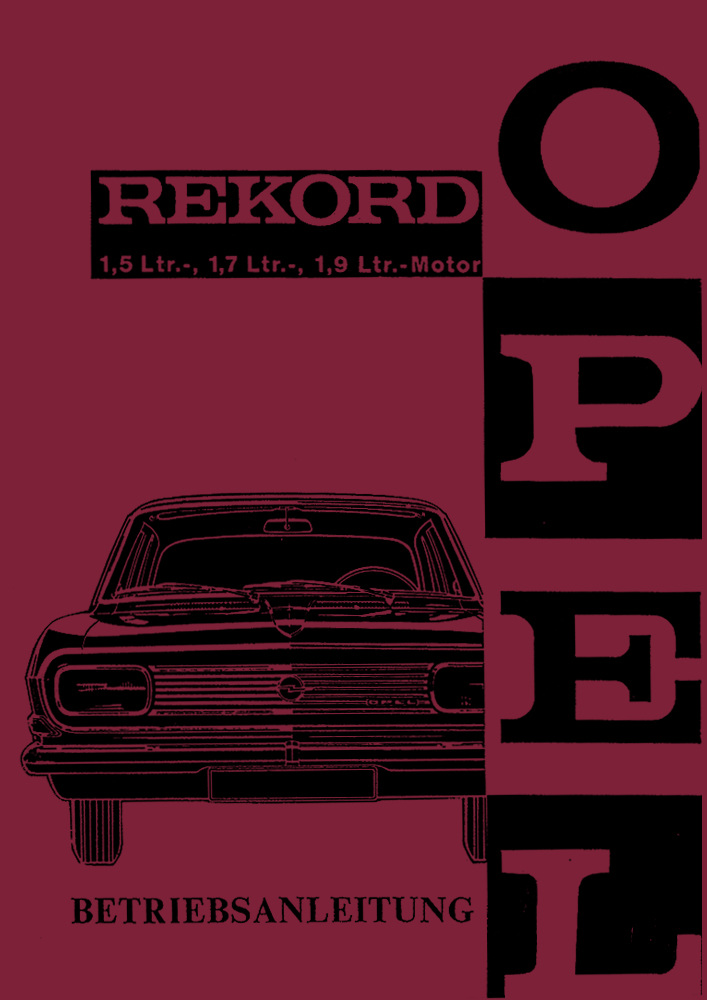 Operating manual for Opel Rekord B with 1500 cc, 1700 cc, and 1900 cc engines. 1966 edition.