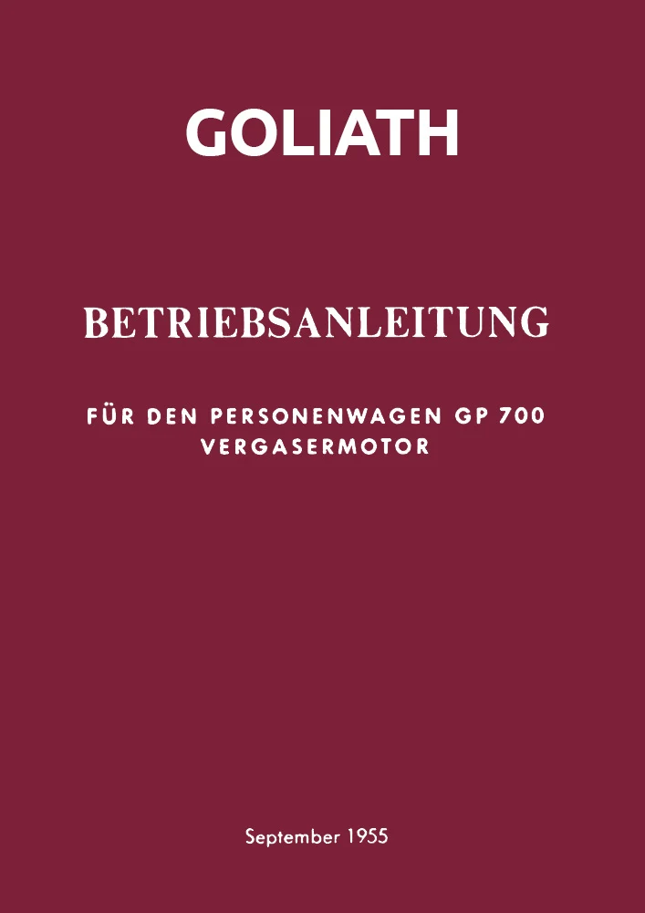 Operating Instructions for the Goliath GP700 with Carburetor Engine. Issue 9/1955.