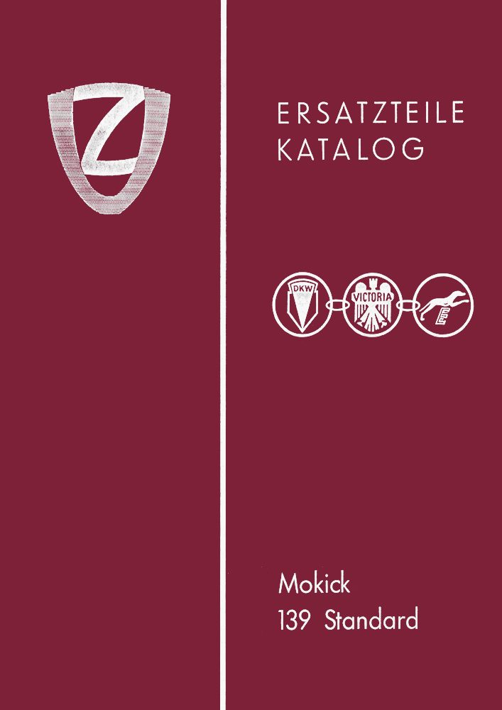 Spare parts list for Zweirad-Union (DKW, Express, Victoria) Type 139 moped. The individual parts of the moped are shown and described in exploded drawings.