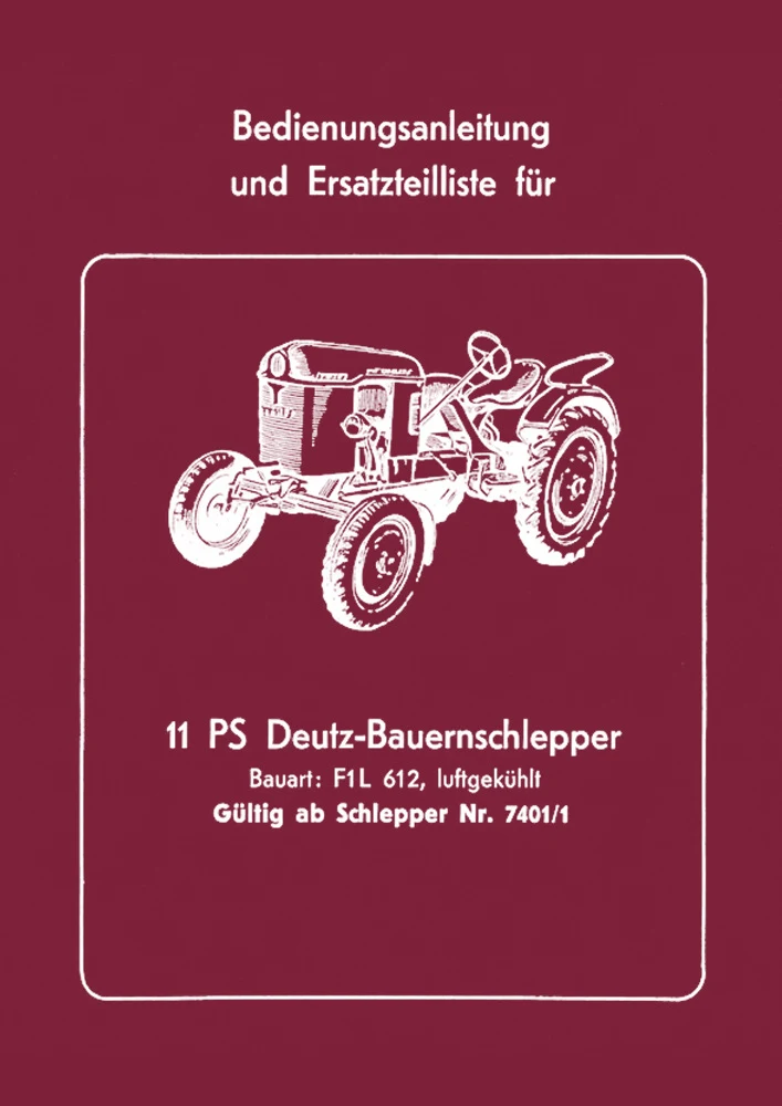 Deutz F1L 612 Farm Tractor, 11 HP: Owner's User Manual and Parts List Catalog