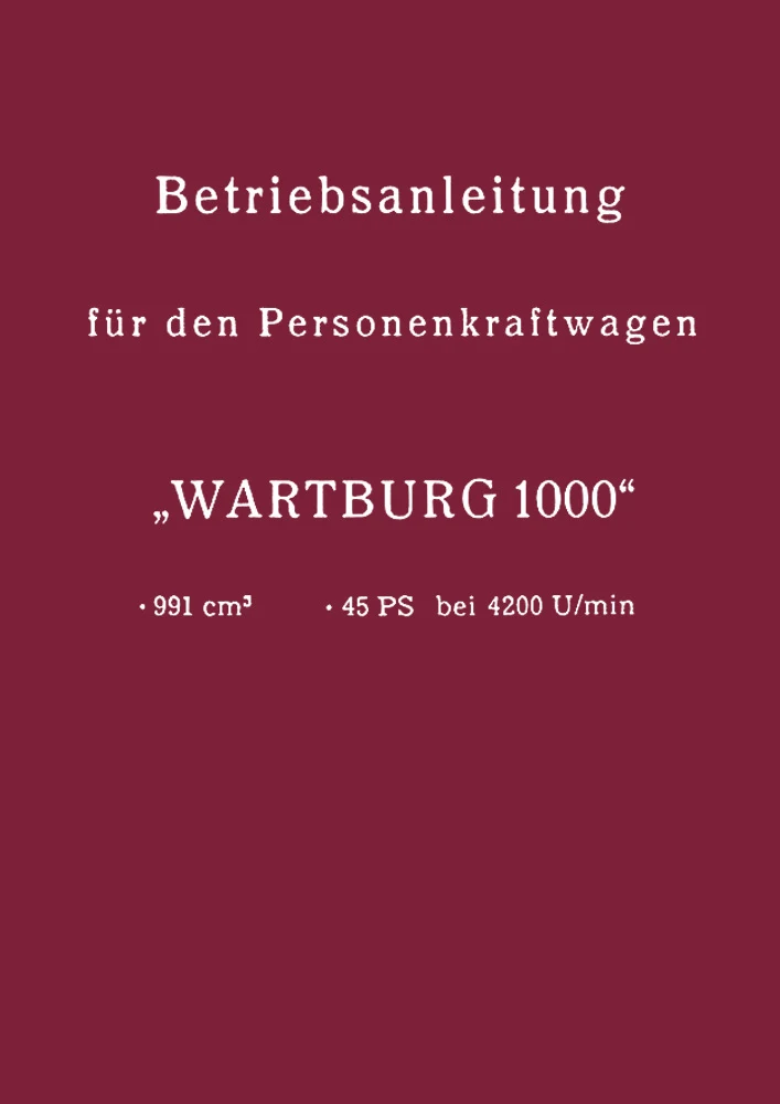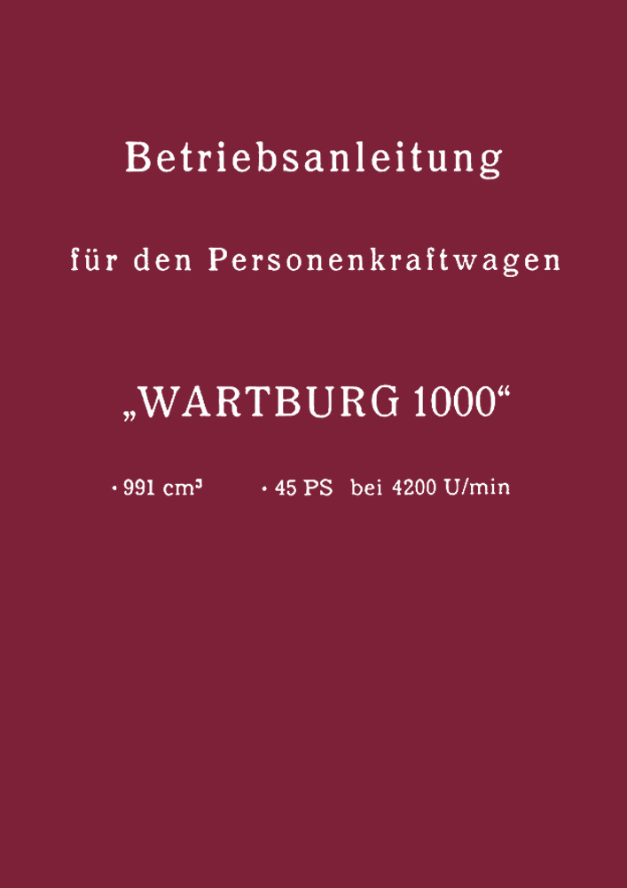 Owner's Manual for the Wartburg 1000 Passenger Car (Model 311-0), 991 cc, 45 hp, including electrical wiring diagram. 1964 edition.