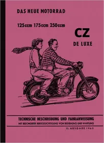 Description and operating instructions for CZ 125 ccm, 175 ccm and 250 ccm motorcycles types: 453/05, 450/05, 455/05. 1963 edition, in German.