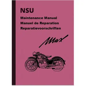 Repair Instructions/Maintenance Instructions for NSU Max Standard, Special and Addendum for Supermax. Technical instructions and special tools. Edition about 1955-1957 in English, French and Dutch.