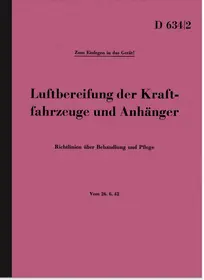 Pneumatic tires of motor vehicles and trailers. Guidelines for treatment and maintenance. Dienstvorschrift D 634/2. edition 26.06.1942, in German.