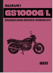 Supplementary Workshop Manual (to the Service Manual GS 1000 from 1978) for Suzuki GS 1000 G/L and GS 1000 GLT (Chopper) and GS 1000 GT with technical data, wiring diagrams, as well as installation, removal and repair of engine, transmission, brakes and chassis. Edition December 1980, in German.