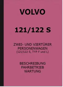 Operating instructions for Volvo 121 / 122 S (Type F and L) Two and four door passenger cars. Description, operation and maintenance with wiring diagram and lubrication chart.