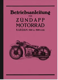Operating instructions for Zündapp Kardan K 500 ccm and K 800 ccm motorcycles. Including maintenance plan (electrics) and lubrication plan. Edition in german.