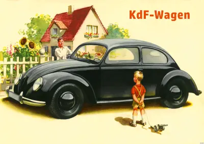 VW KdF-Wagen Beetle "Family, Child with Toy" Poster Picture